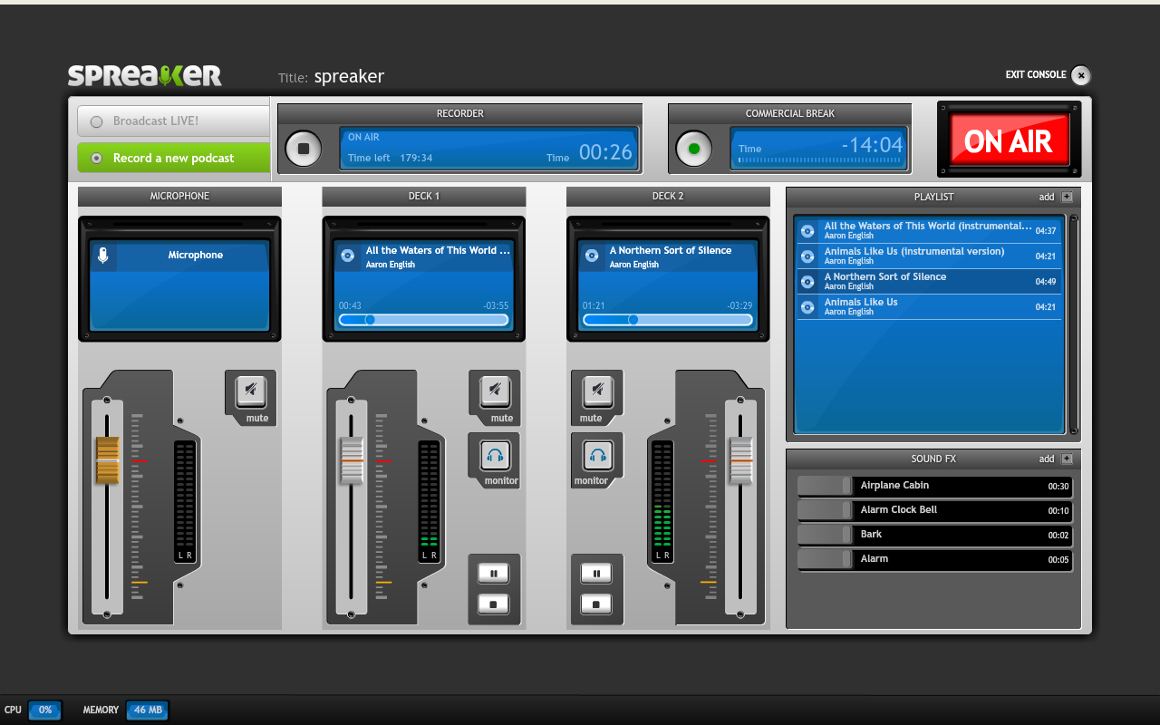 Andando nel dettaglio, per chi non conoscesse già questa start-up (scommetto che siate in pochi), Spreaker è una piattaforma che permette all’utente di creare un proprio programma radiofonico, completo di parlato con la possibilità anche di mixare i brani musicali direttamente online. Il tutto utilizzando una vera console deejay che riproduce in rete un fedele esempio delle console professionali.