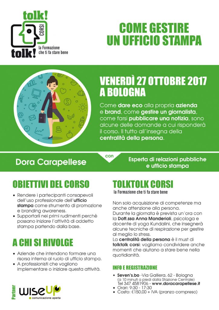 La locandina del primo evento e le indicazioni per l’iscrizione al corso Ufficio Stampa!
